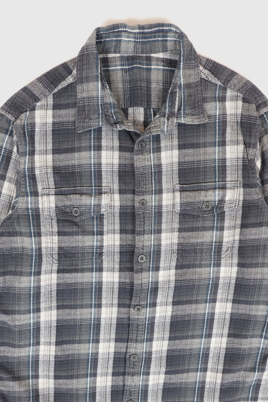 Vintage Grey Plaid Flannel Button-Down Shirt