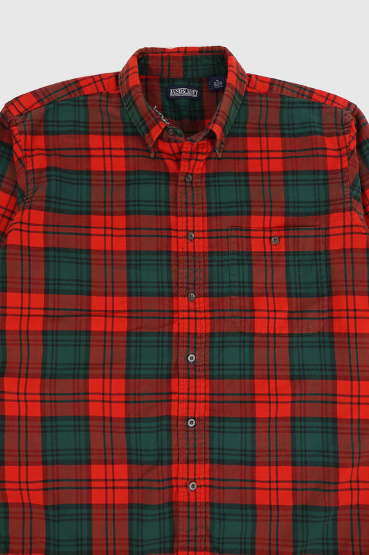 Vintage Green Plaid Flannel Button-Down Shirt