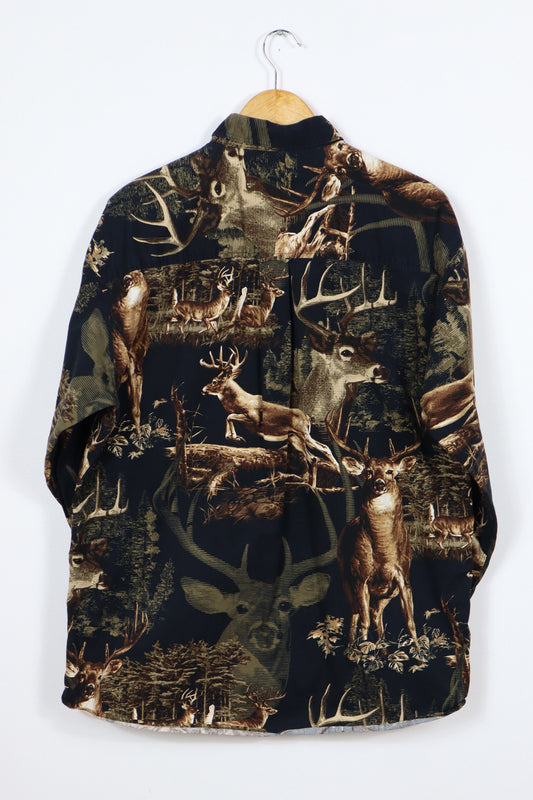 Vintage Buck Pattern Button-Down Shirt
